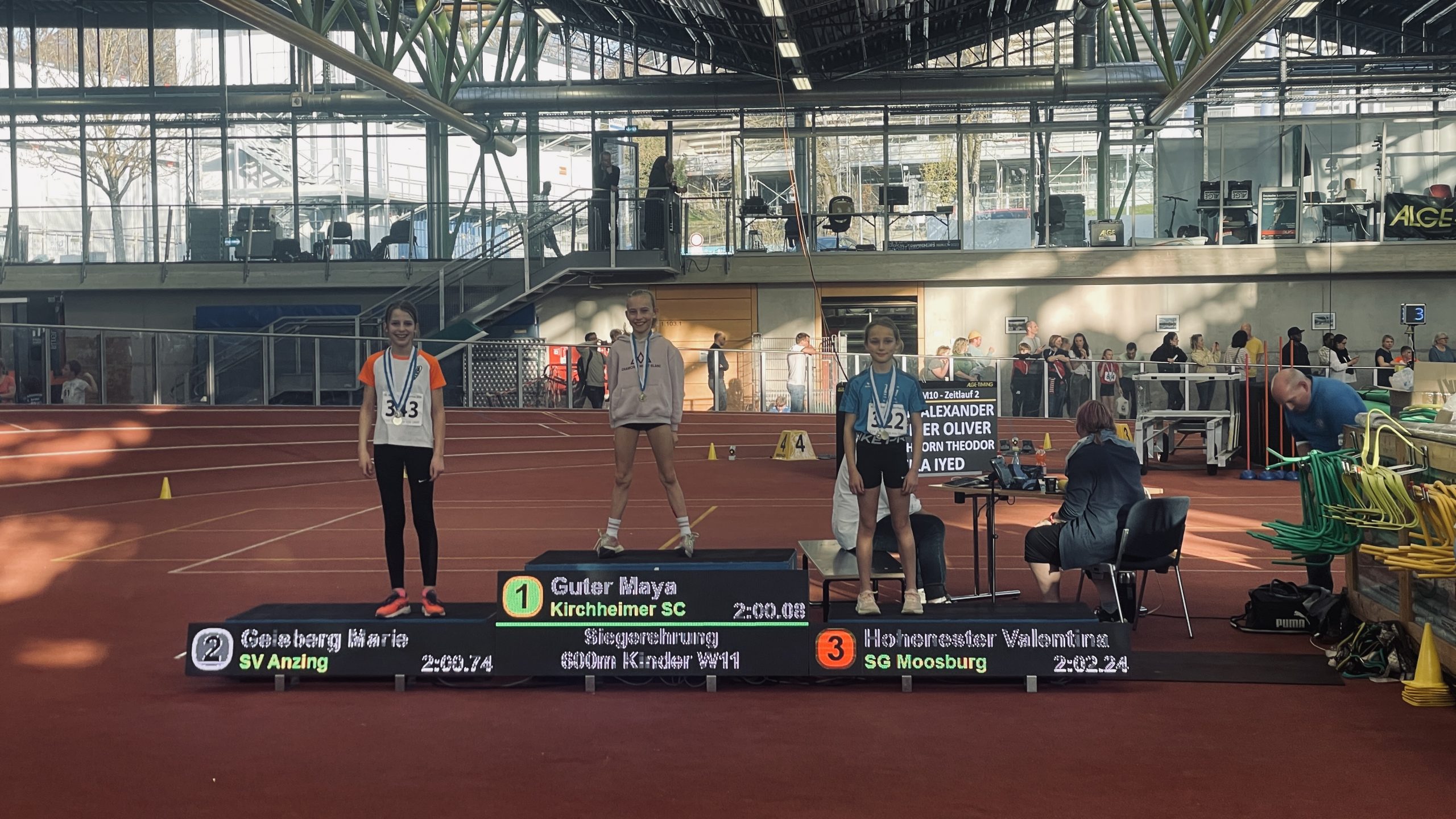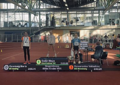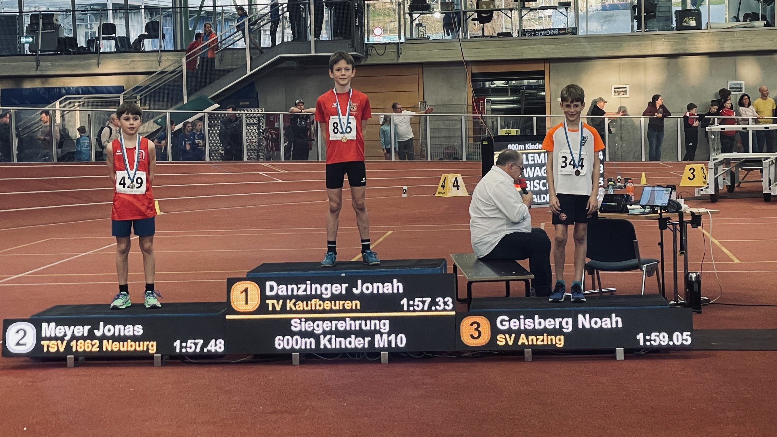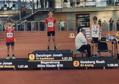 Auch Noah Geisberg (W10) erkämpfte sich über 600 Meter eine Podestplatzierung: Mit 1:59,05 Minuten blieb er erstmals unter der Zwei-Minuten-Marke und wurde Dritter. In der Altersklasse M11 zeigte Tim Samer ein ebenso starkes Rennen, blieb mit 1:59,55 Minuten ebenfalls unter zwei Minuten und erreichte den 7. Platz.
